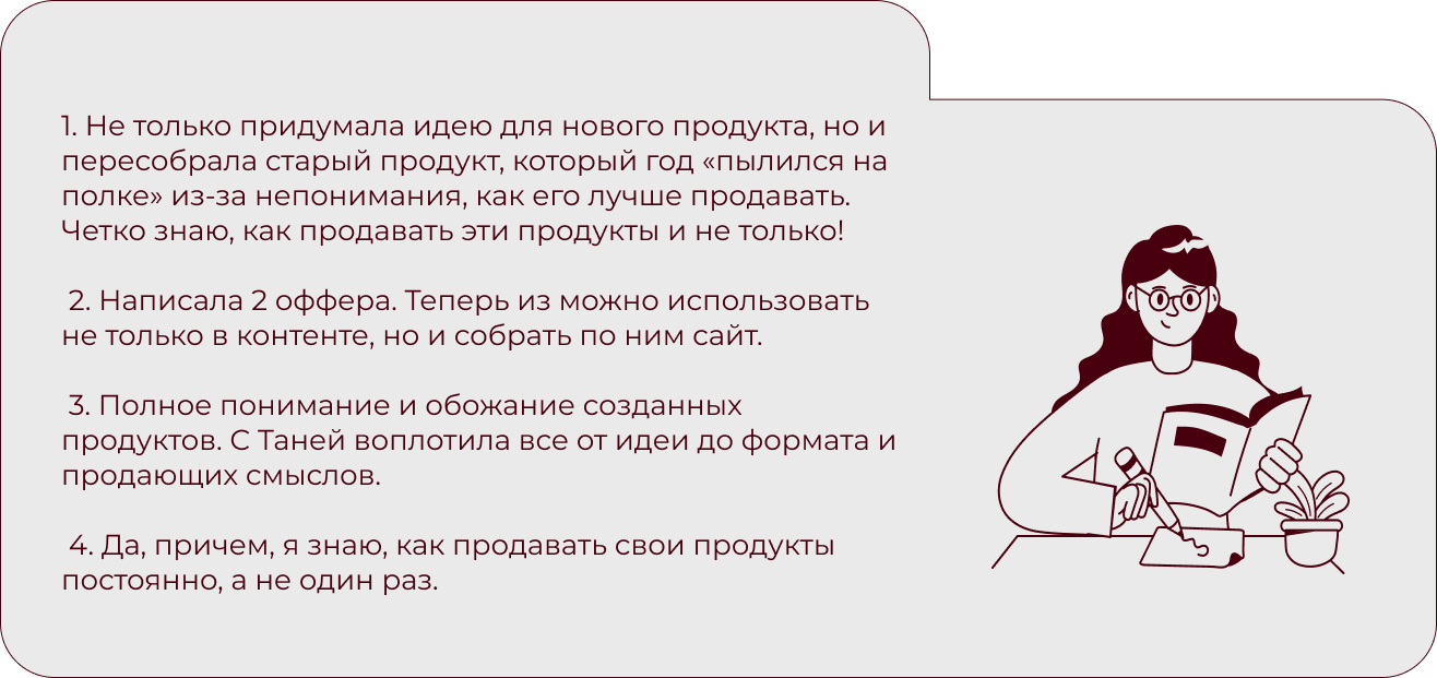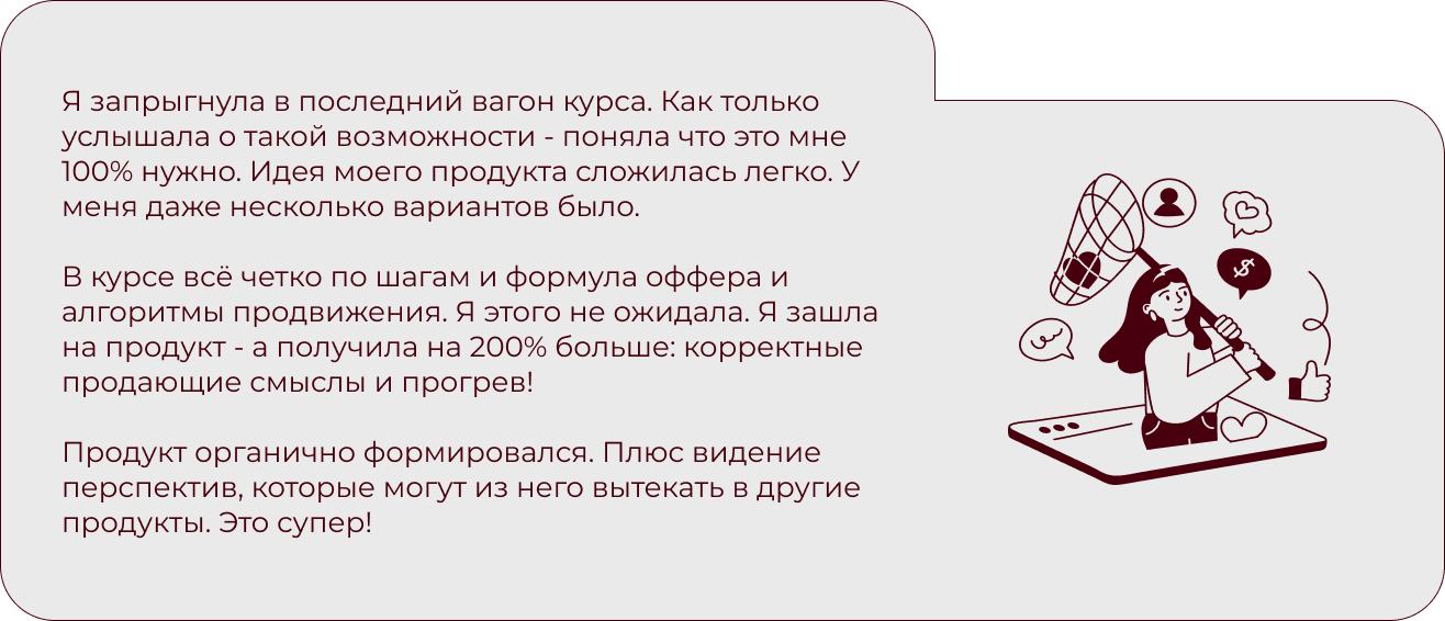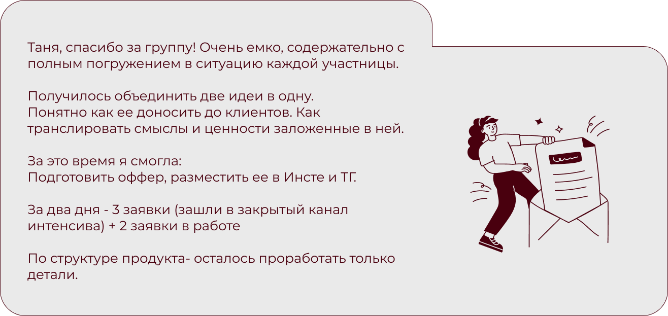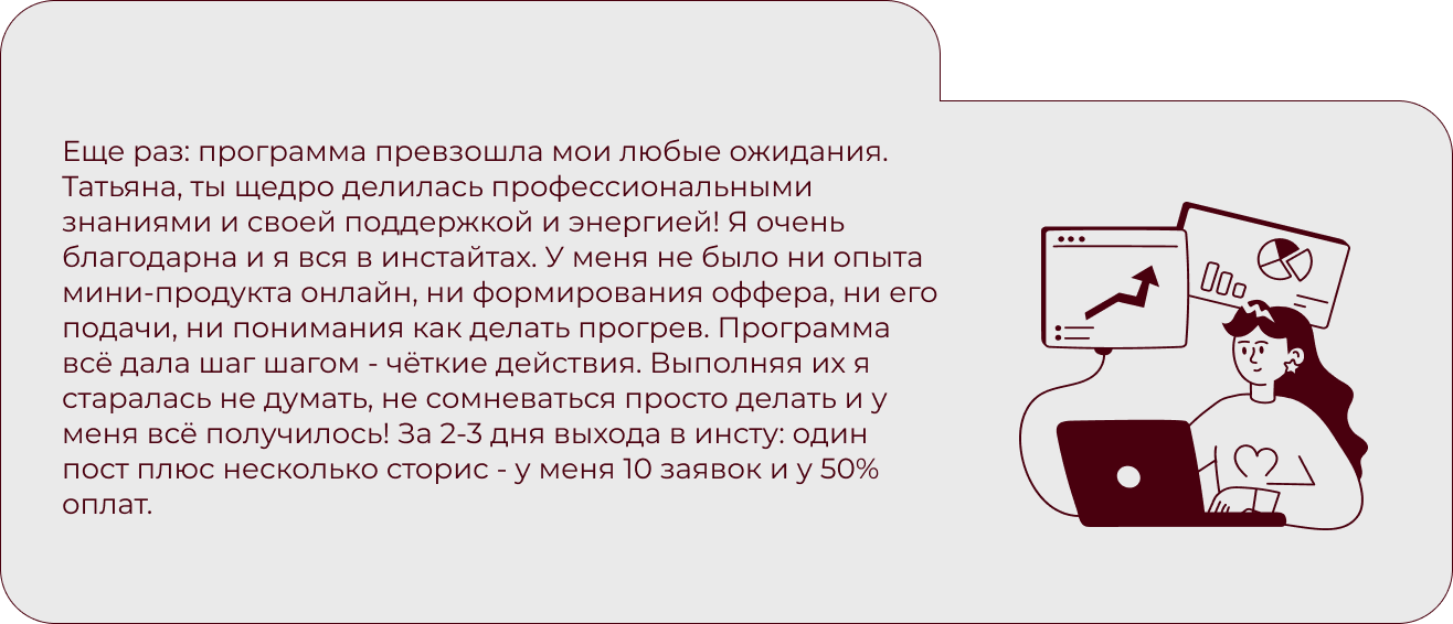 Экспертам, наставникам и помогающим практикам, которые хотят зарабатывать честные деньги в онлайн: с понятными программами своих продуктов, кейсами и уверенностью, что все получится